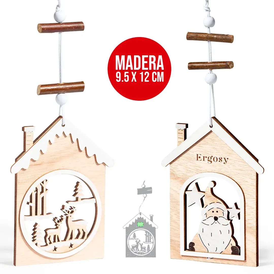 Elegante y moderno adorno navideño en madera natural. Incluye accesorio para colgar y está disponibles en dos diseños: Papa Noel y motivos navideños. Medidas: 12 cm / 9.5 cm / 0.6 cm | 17 gr