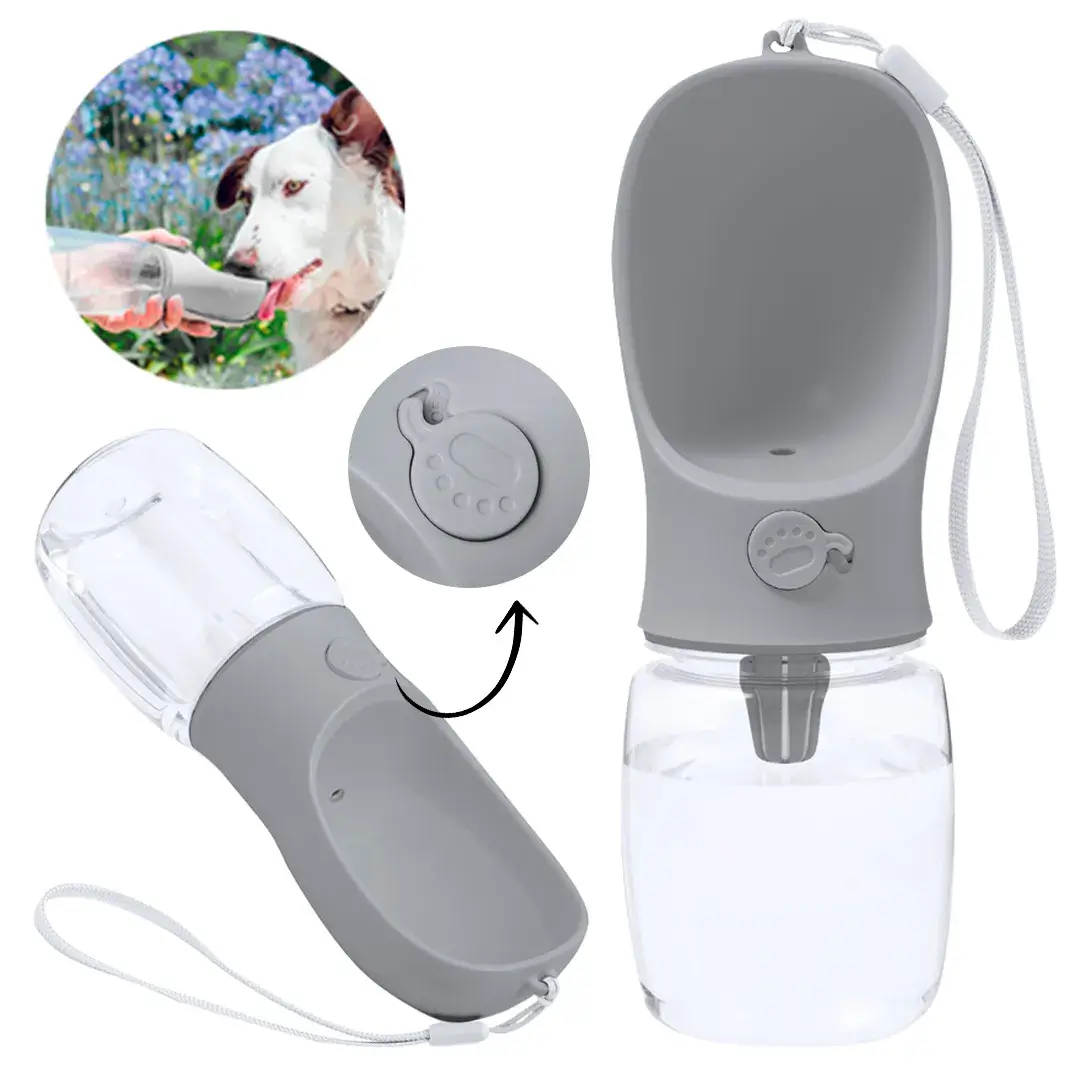Práctico bidón para mascotas de 350 ml, fabricado en resistente combinación de ABS y PET. Incluye depósito de 350 ml y original dosificador para llenar bebedero con la cantidad de líquido deseada. Con práctica correa para fácil transporte y presentado individualmente en caja de diseño kraft. 350 ml