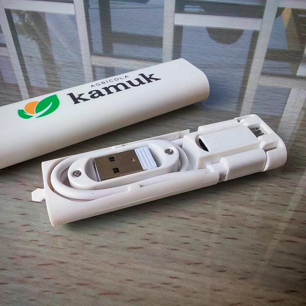 Gracias a su formato compacto de 10.7 cm x 3 cm, el cargador valencia se convierte en un accesorio indispensable para empresas que buscan artículos prácticos, duraderos y totalmente útiles para su equipo humano, reforzando al mismo tiempo una imagen corporativa moderna y funcional.