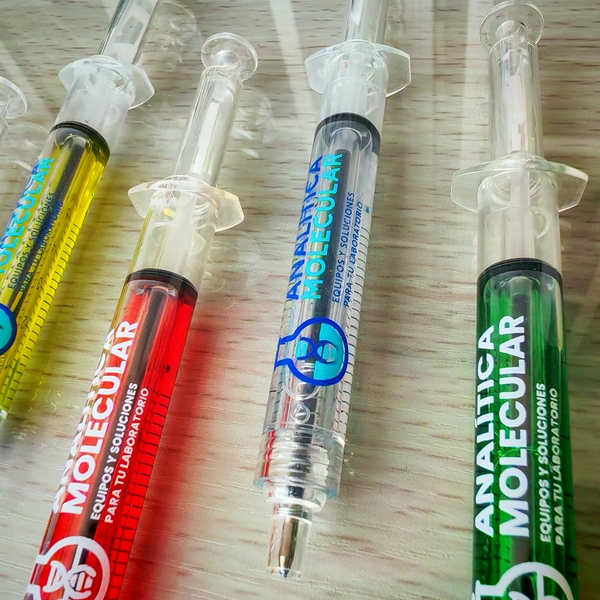 El lapicero jeringa es un producto innovador y llamativo que combina creatividad y funcionalidad en un solo accesorio de escritura. Su diseño inspirado en una jeringa lo convierte en una opción ideal para empresas del sector salud, laboratorios y organizaciones relacionadas con el ámbito científico, como Analítica Molecular.