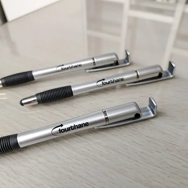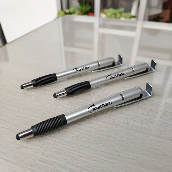 FOURTHANE DEL PERÚ SAC eligió el lapicero plástico modelo CSC030, un artículo promocional versátil que combina funcionalidad y diseño moderno. Este modelo cuenta con función touch para pantallas y práctico portacelular, convirtiéndose en un regalo corporativo ideal para clientes y colaboradores. Su tinta azul asegura un uso constante y recordación de marca en cada detalle.