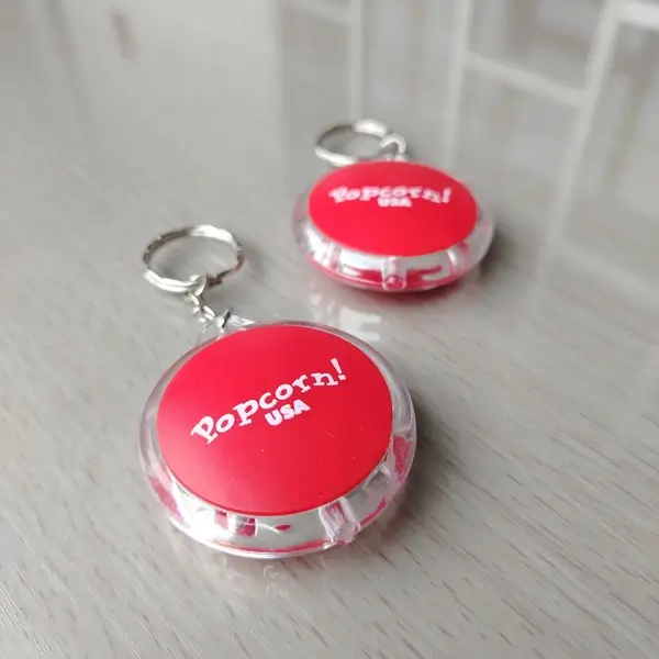 El llavero redondo linterna La Comarka combina practicidad y estilo en un solo accesorio. Con un diámetro de 5 cm, está elaborado en plástico resistente e incorpora una luz LED integrada, ideal para el uso diario o como obsequio empresarial.